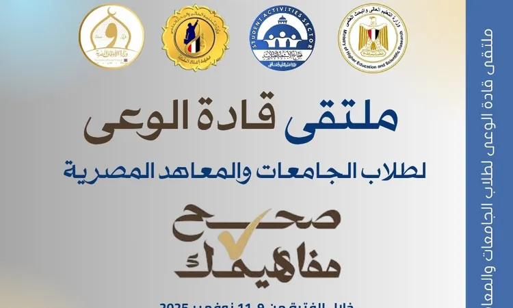 في هذا الإطار، ينظم قطاع الأنشطة الطلابية ومعهد إعداد القادة برنامج “ملتقى قادة الوعي لطلاب الجامعات والمعاهد المصرية” خلال الفترة من ٩ إلى ١١ نوفمبر ٢٠٢٥، بهدف تعزيز الوعي الوطني لدى الشباب الجامعي، وتنمية قدراتهم، وتصحيح المفاهيم الخاطئة، وترسيخ مبادئ الحوار البنّاء والانتماء الوطني.